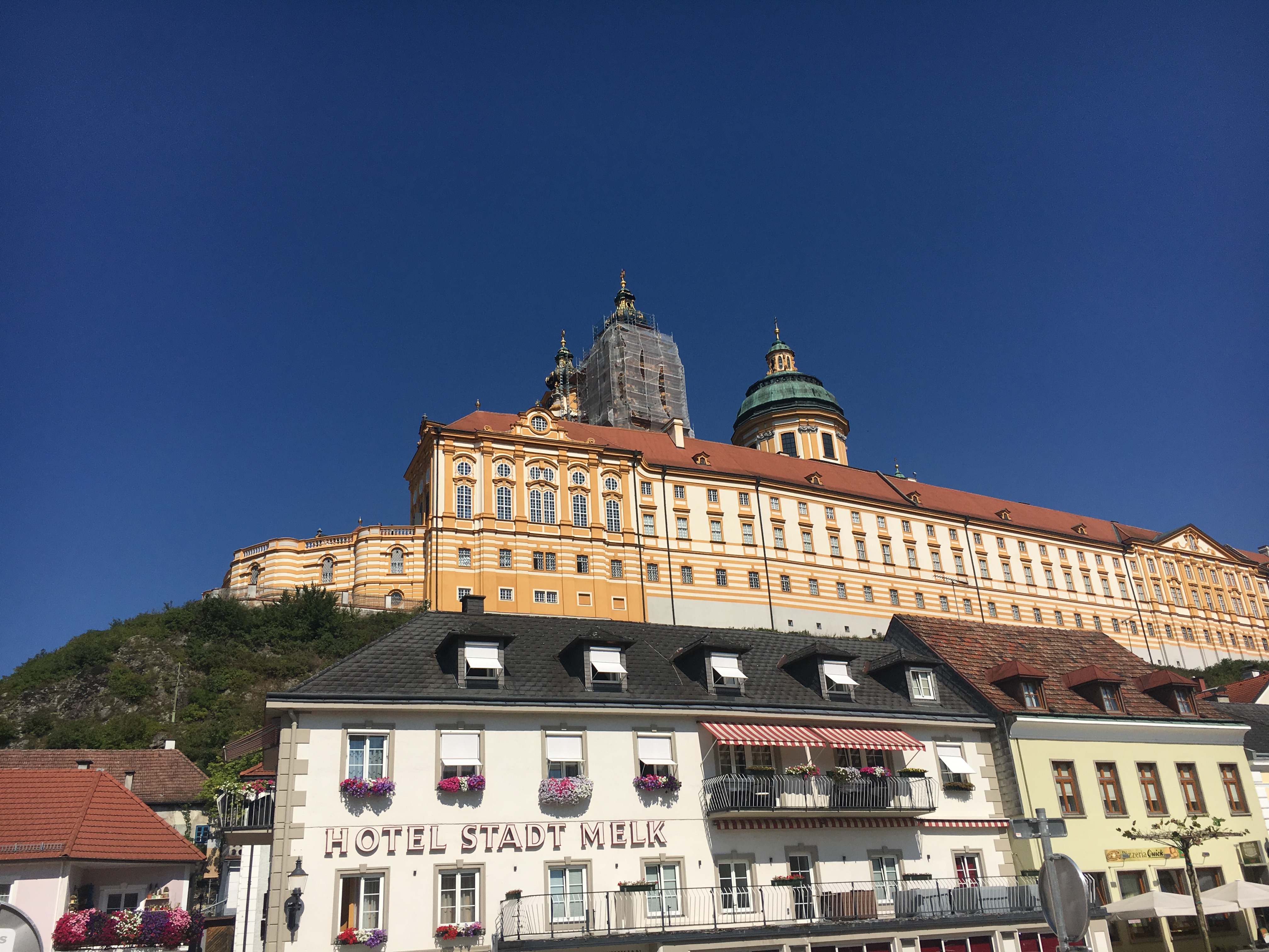 Soon enough we were disembarking from the ferry and ready to get started on our ride. We initially tried to make our way up to see the Melk Abbey, but after taking a few wrong turns we just settled for a couple pictures from the distance, plus there were tons of buses taking ferry passengers straight there so were fine avoiding the clusters of people.