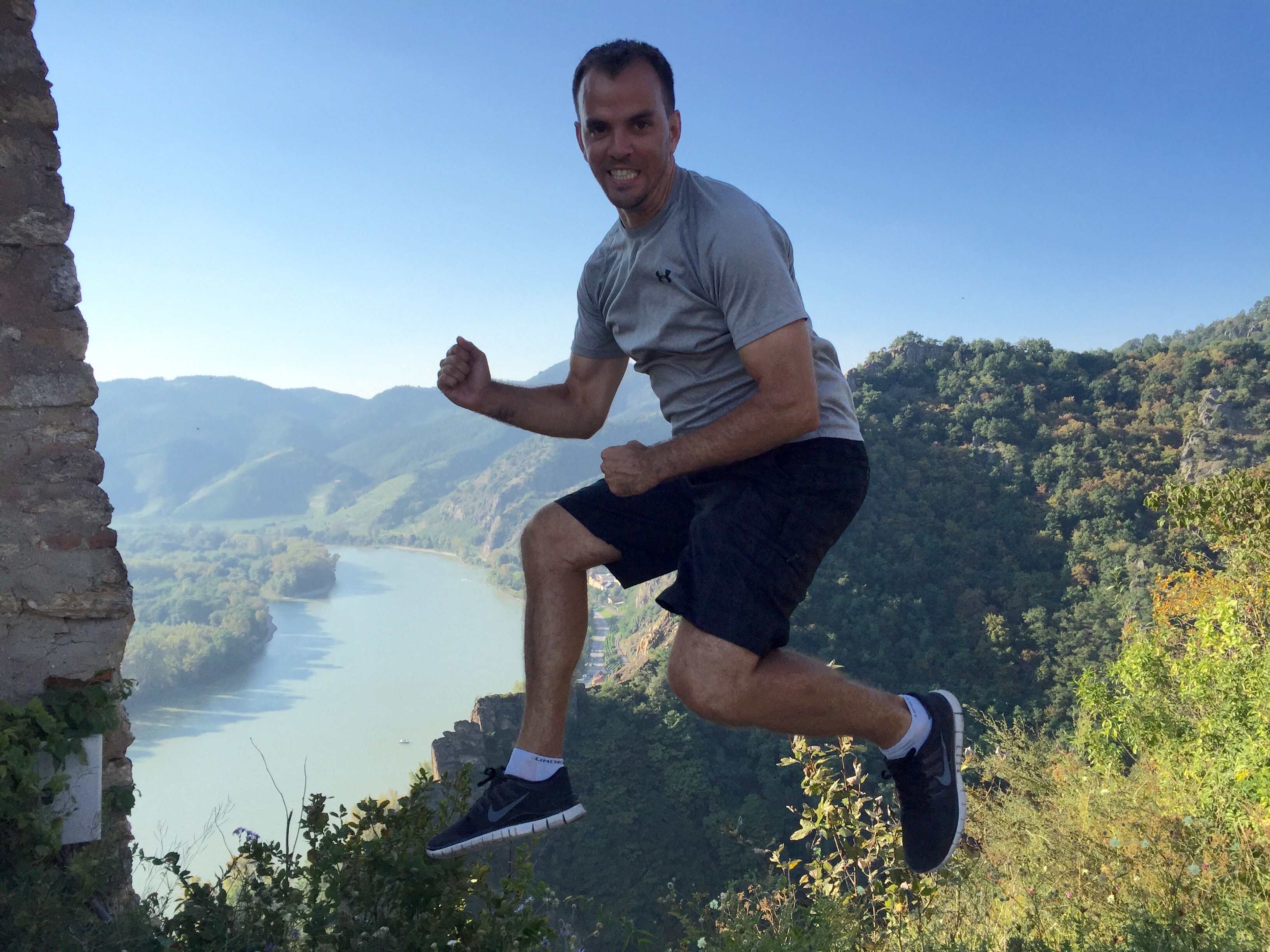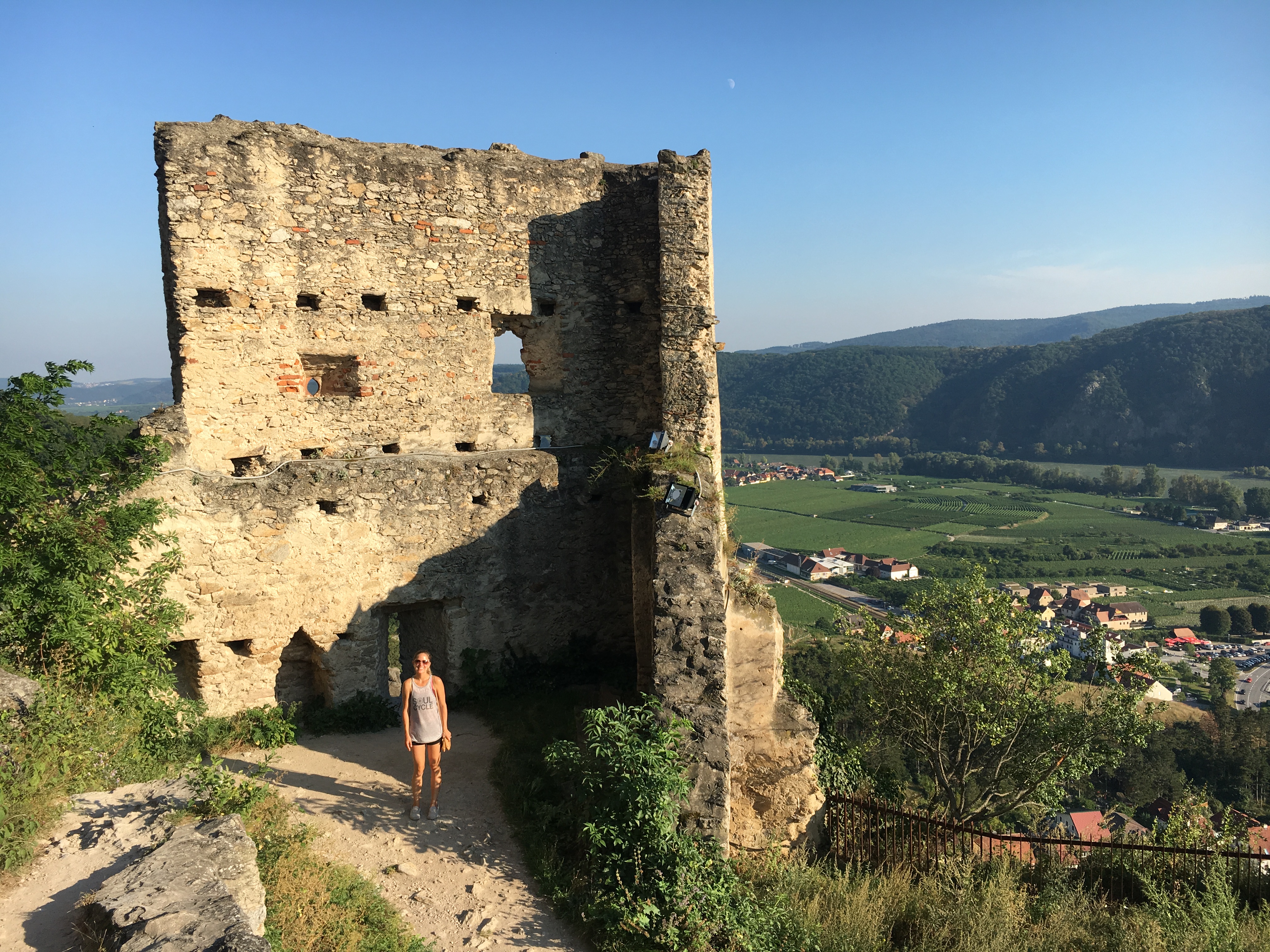 Our last stop on the ride was in the town of Durnstein. This small town appears to cater to the tourists passing through with a variety of souvenir shops along the main pathway. However, it had something special. A winding trail leads out of the town, up the mountain to the ruins of Durnstein Castle high above. We locked up our bikes and hiked up the steep trail. The views from the top made the hike well worth it. Just look at these views knowing that the pictures never do it justice.