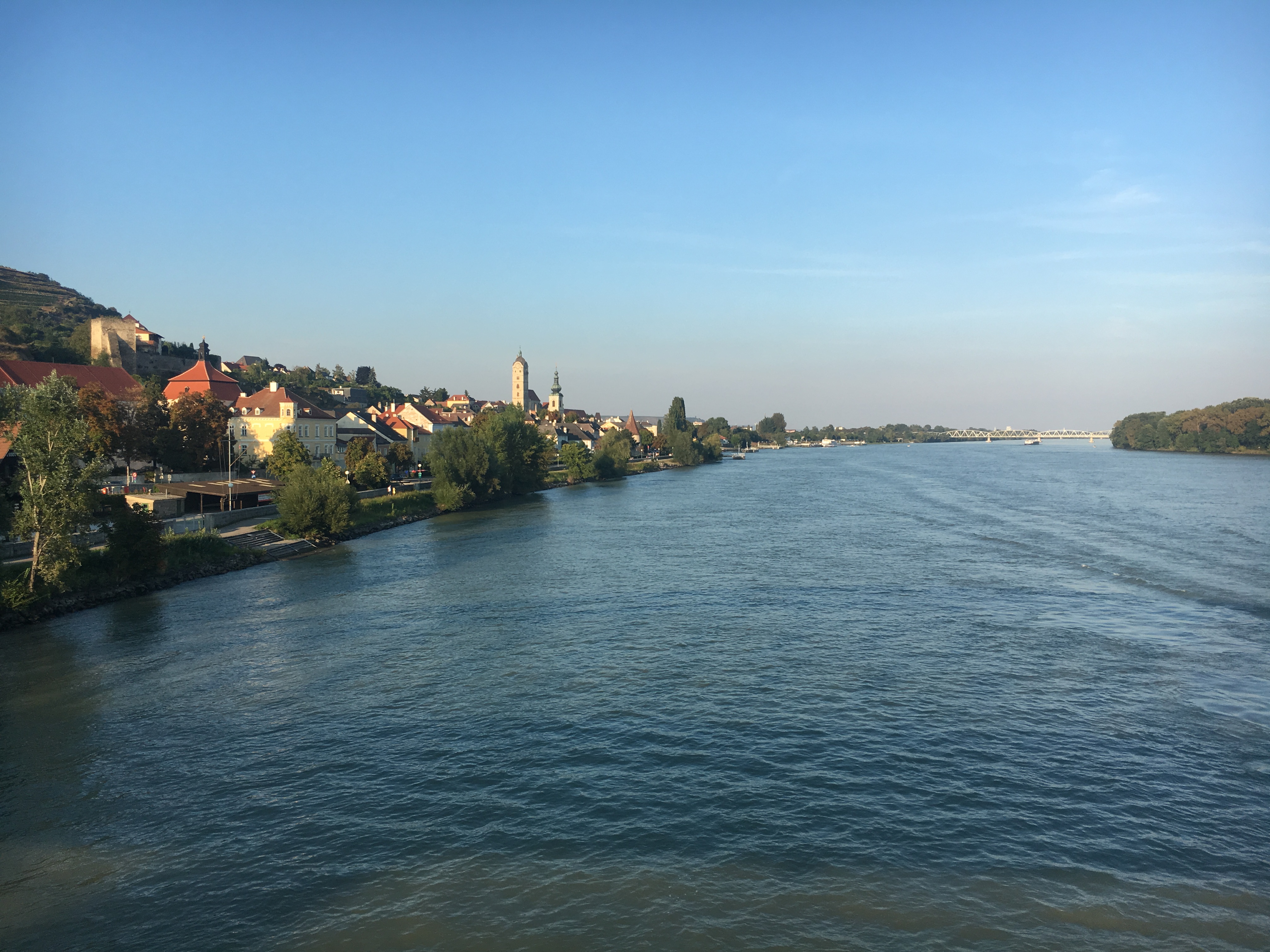For our second full day in Austria, we escaped Vienna for a little break from city life. We’ve spent most of our time within busy cities since leaving the quaint destination of Bruges, Belgium, so this was a welcome break. Whitney had been looking up biking trips and tasting tours through Austria’s wine country. As I don’t drink anymore, we decided to make our own self-guided tour. We put together a route that would take us through the famed Wachau Valley, from Melk to Krems (about 36km), riding downstream AKA downhill for the entire ride. In order for all the pieces to come together, we needed to catch the 7am train from Vienna to Krems, walk to the bike shop on the far side of the river to pick up our rental bikes, and then ride back to the ferry dock to catch the 10am ferry to Melk boarding with our bikes. This would allow us to ride back from Melk to Krems (downstream), return the bikes and head back home from there. We had quite a task in front of us when our alarm went off early in the morning, but we managed to make it just as planned.