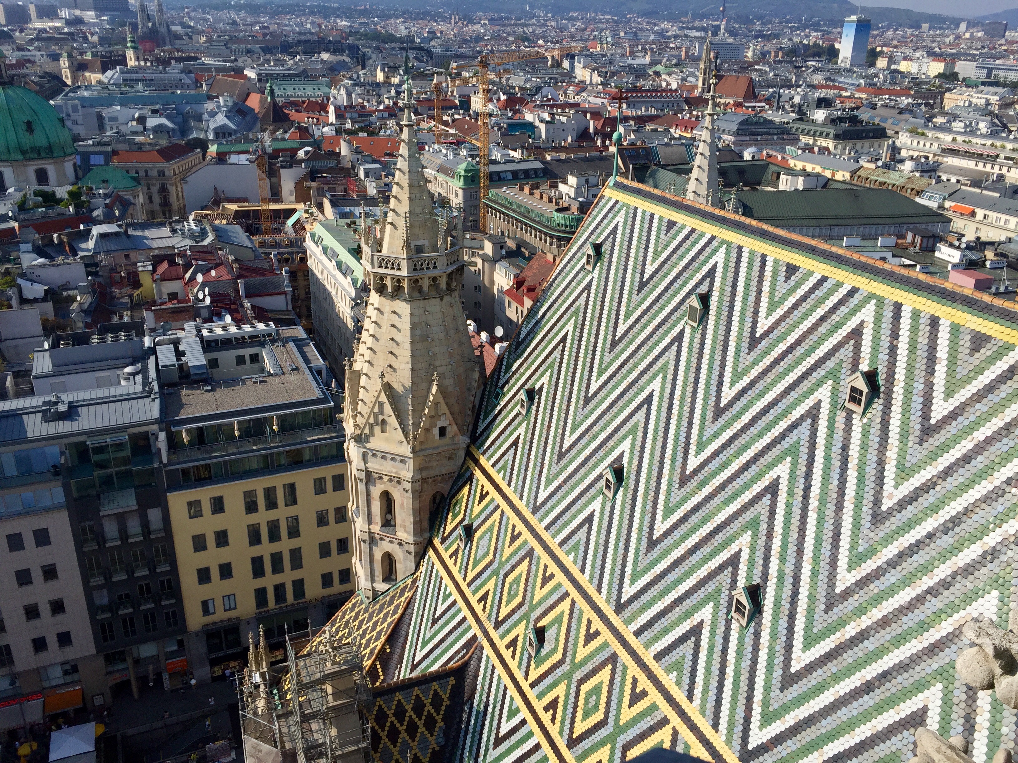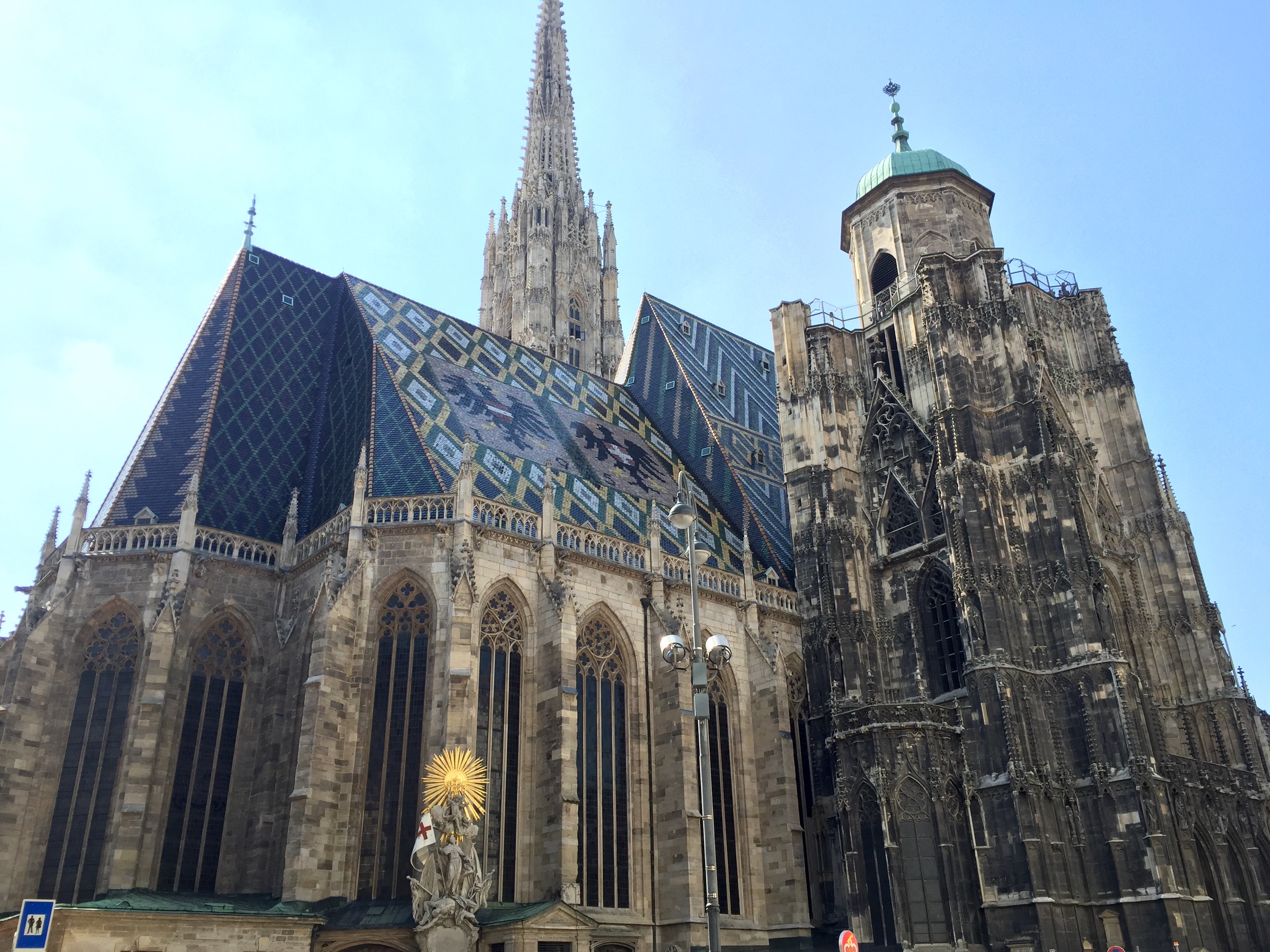 Next we arrived back to St. Stephan’s Cathedral where we had first arrived from the subway. We paid the usual fee and climbed to the top of the bell tower (we can’t forget this hobby of ours). One of the highlights at the top was simply looking down at the gorgeous colorful roof top. The roof was made in some local ceramic factory with a secret formula for the colors; it’s been a secret since its creation according to something I read. Afterwards, we took a peek at the inside of the cathedral. It was nice to see, but after seeing so many cathedrals over the last couple months, they are beginning to run together.