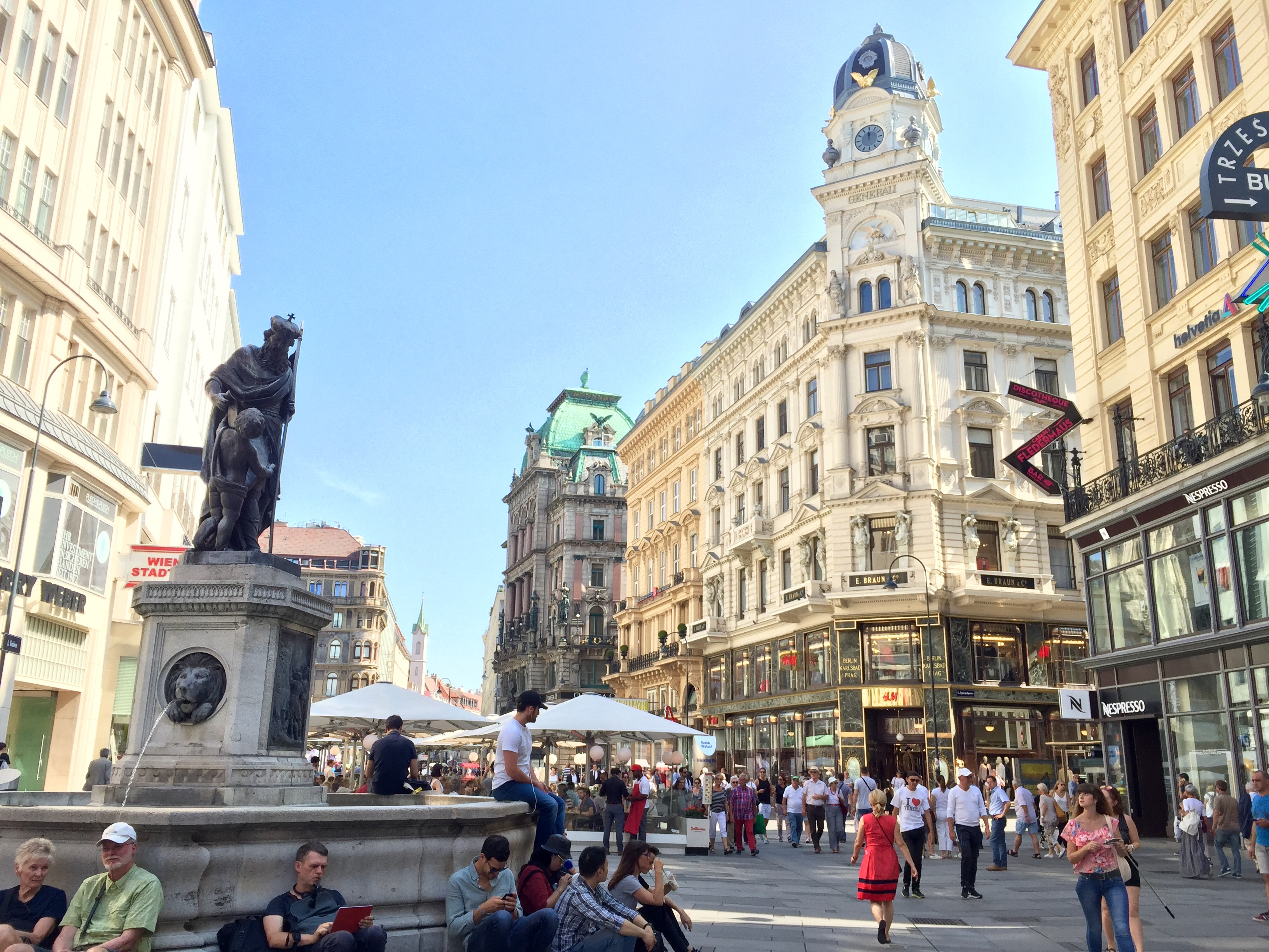 It was the heat of the day when we left Kunsthistorisches Museum, but we carried on as planned to check out the Museum Quartier. This area is known to be filled with local students spread out in the evening similar to New York’s Union Square (sorry, most of my references are from NYC, but hopefully everyone can still relate). There wasn’t much happening there at that time of day though. Still, we snapped a few pictures, then wandered further past Vienna’s Opera house. The lobby was locked, so we only passed by.