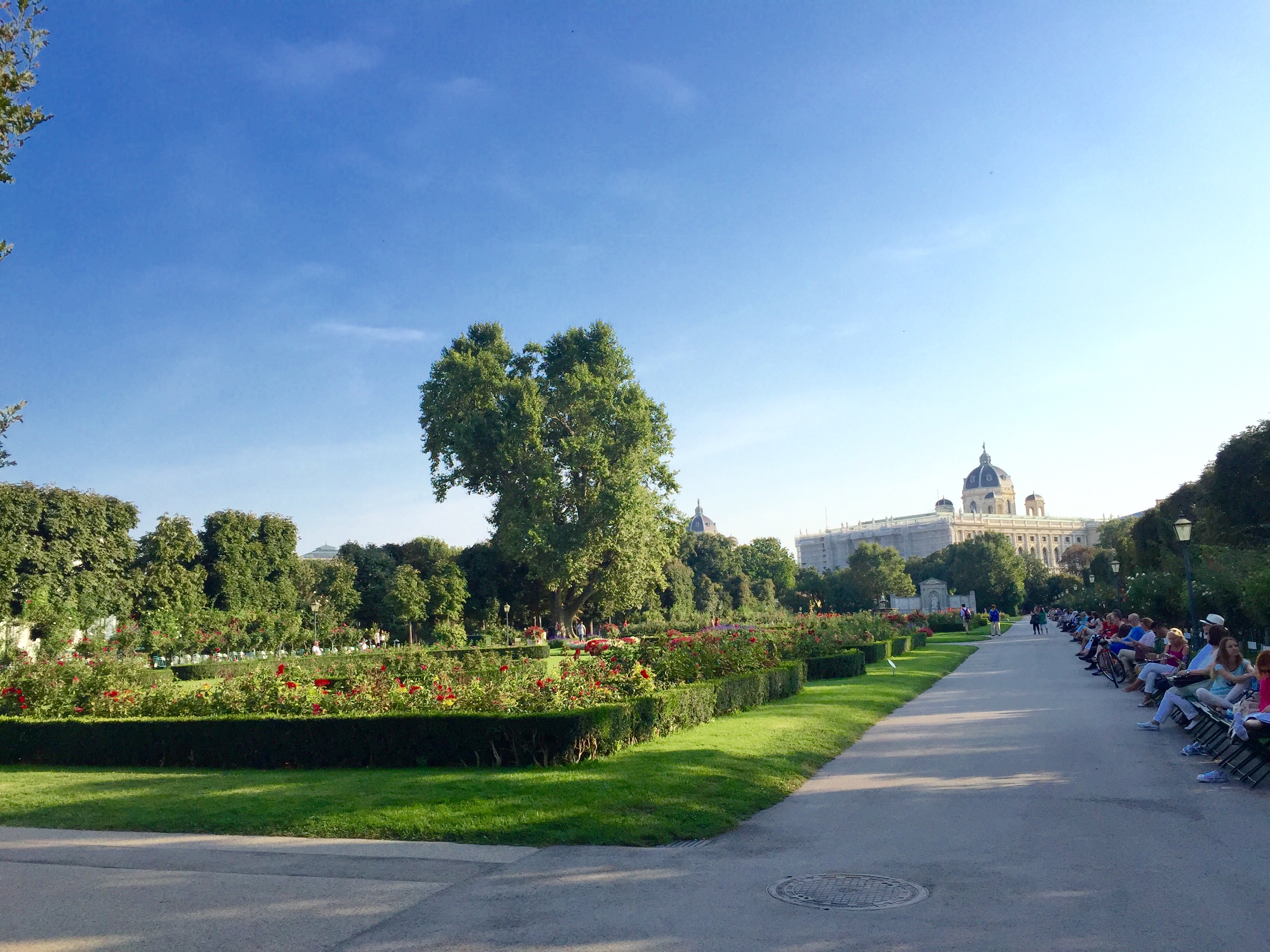 To finish up our time here we entered Volksgarten. This manicured garden sits behind the Hofburg Palace and is definitely worth checking out. We relaxed a while on the chairs looking over some flower gardens, then decided we would make the long walk back to our Airbnb (we are always hiking, even if it’s just along the city streets for miles).